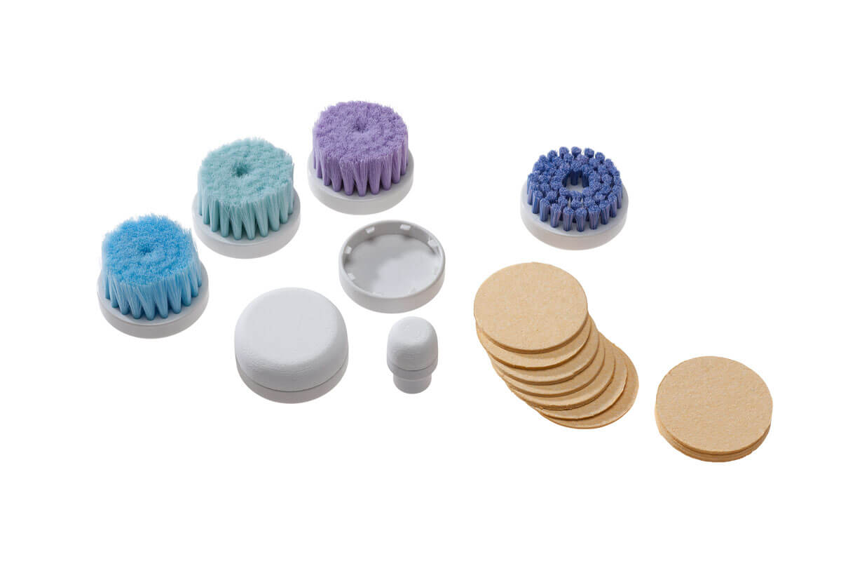 9. IONTO PEEL professional set: 8 pieces, contains 1 piece of each listed brushes, grinding stones and sponge holder including replacement sponges